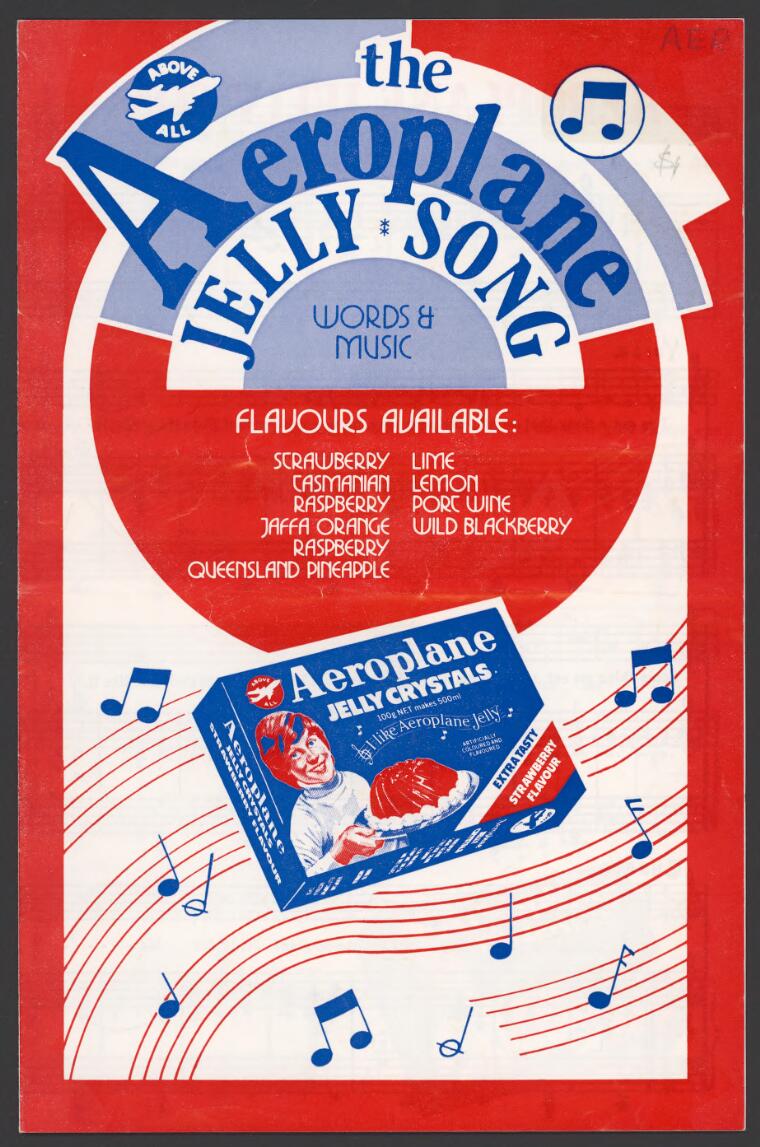 The song was written by Albert Lenertz, the business partner of Bert Apleroth, founder of the company which created Aeroplane Jelly crystals. Originally performed as a radio jingle in 1930 it has continued in use to the present day. In the 1940s it was played on radio up to 100 times a day (charming as it is, this is a horrifying thought). Aeroplane Jelly Crystals are still Australia's best-selling brand.